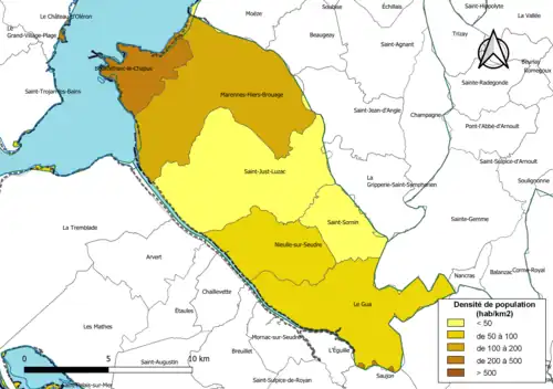 - 3 communes de plus de 2 000 habitants : Bourcefranc-le-Chapus, Le Gua et Marennes.