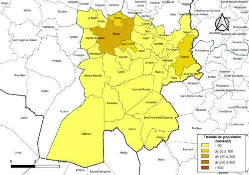 | Lignan-de-Bazas | 33244 | Lignanais | 11,1 | 403 (2022) | 36 |