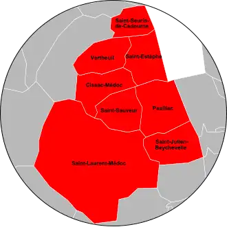 | Saint-Laurent-Médoc (siège) | 33424 | Saint-Laurentais | 136,55 | 4 517 (2014) | 33