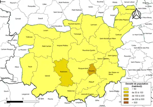 | Gouarec | 22064 | Gouarécains | 6,41 | 912 (2022) | 142 |