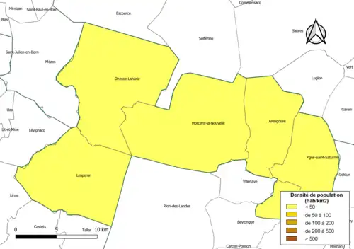 | Onesse-Laharie | 40210 | Onessois | 132,13 | 1 057 (2022) | 8 |