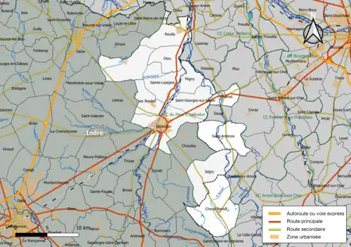 - ↑ « Liste des communautés de communes et de la communauté d'agglomération dans l'Indre au 1er janvier 2020. » [PDF], sur le site de la Préfecture de l'Indre (consulté le ).