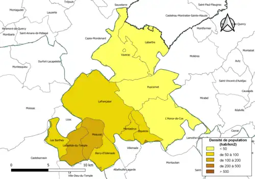 | Labastide-du-Temple | 82080 | Templais | 10,92 | 1 137 (2022) | 104 |