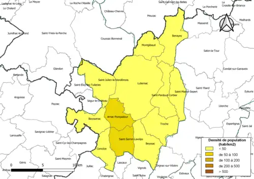 | Arnac-Pompadour | 19011 | Pompadours | 15,09 | 1 206 (2022) | 80 |