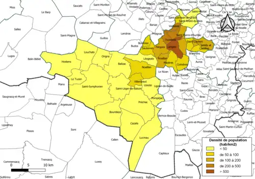 | Langon | 33227 | Langonnais | 13,71 | 7 523 (2022) | 549 |
