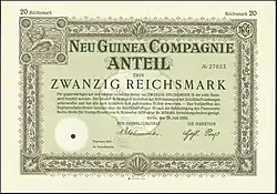 En 1884, la Neuguinea-Kompagnie fut fondée à Berlin dans le but de coloniser et d'exploiter les ressources de la Neu Guinea, la Nouvelle-Guinée allemande, pour laquelle l'intérêt allemand s'accrut après l'annexion par le Queensland britannique du l'Est de l'île de Nouvelle-Guinée.