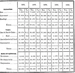 On trouve dans les rapports des Ingénieurs des Mines, les indications suivantes sur la composition des charbons d'Hardinghen, les lieux de consommation de ces charbons et les modes d'expédition[D 16].