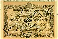 - ↑ France. Conseil d'administration des chemins de fer de l'état, Chemins de fer de l'état: Conseil d'administration. Recueil des conventions, sentences arbitrales, loi de rachat, décrets d'organisation, arrêtés ministériels et cahier des charges relatifs aux chemins de fer de l'État ..., A. Chaix, 1879, pp. 30 et 77-78 lire (consulté le 21 mars 2010).