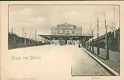 - ↑ Hans Schweers, Henning Wall, Eisenbahnen rund um Aachen: 150 Jahre internationale Strecke Köln – Aachen – Antwerpen, Aix-la-Chapelle, Verlag Schweers + Wall, (ISBN 3-921679-91-5)