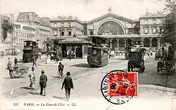 Bus au terminus de la gare de l'Est pour le Trocadéro.- Bus à plate forme de la ligne E, avant la Première Guerre mondiale, boulevard Saint-Martin.
