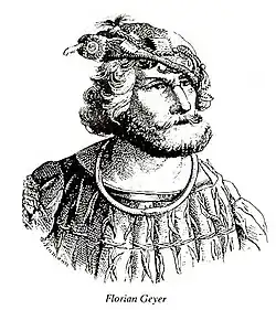 La Compagnie Noire a été formée en 1525 à Rothenburg, à partir d'agriculteurs de la milice locale - peut-être 600 hommes - et d'une compagnie de chevaliers mercenaires. Le chef de la Compagnie Noire, du moins théoriquement, était le noble Florian Geyer.