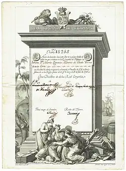 François Cabarrus, directeur de la Compañía Guipuzcoana de Caracas, sur le point d'être dissoute, propose d'unir le commerce de l'Amérique avec celui de l'Asie par les Philippines[1] en réunissant les droits de l'ancienne compagnie à la nouvelle[2]. Son plan est adopté, et la Compagnie royale des Philippines est créée le avant d'être institutionnalisée le [3] par une Real cédula[N 1] de Charles III et est dirigée par François Cabarrus.
