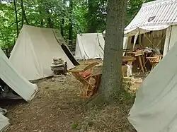 Le campement de tente reste sensiblement le même avec des tentes alignées à la suite d'un vaste auvent qui sert de cuisine et d'aire de repos. Les vieilles tentes colorées sont remplacées par des tentes en lin aux formes plus représentatives de l'époque. Tout le matériel commun est revu en profondeur.
