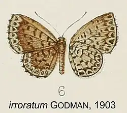 Comphotis irroratum a été décrit par Frederick DuCane Godmanen 1903 sous le nom de Cricosoma irroratum[1].