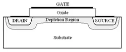 Il fallut ainsi attendre le début des années 1960 pour voir apparaître les premiers dispositifs MOS puis CMOS industriels, dont le développement avait été rendu possible par les progrès enregistrés dans le domaine des transistors bipolaires, et en particulier la résolution des problèmes d'interface oxyde-semiconducteur[6].