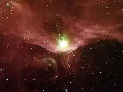 - ↑ Hayashi et al. 1985; Keene et al. 1985; Lester et al. 1986; Schwartz et al. 1989; Hasegawa et al. 1991; Golynkin et Konovalenko 1991; Smirnov et al. 1992; Plume et al. 1994; Wilner et Welch 1994; Zhou et al. 1994; Schneider et al. 1995; Minchin et al. 1995a,c; Stoerzer et al. 1995; Parc et Minh 1995; Preibisch et Smith 2002; Bally et al. 2002; Poelman & Spaans 2006, 2005