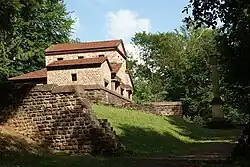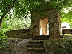 Ce complexe est entouré d'un mur de plan trapézoïdal (46 × 36 m). Il comprenait probablement à l'origine cinq temples qui s'alignaient face à la vallée du Mannebach. Au fil du temps, quatre dépendances et deux portails y furent ajoutés. L'un des temples a été remplacé par un autre adossé directement derrière lui dans la pente, tandis que trois autres temples ont dû céder la place à un unique temple plus grand doté d'un déambulatoire à trois côtés.
