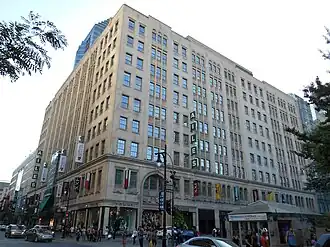 Dessiné par la firme Ross et Macdonald et construit en 1925, l'édifice Eaton a longtemps abrité le plus grand magasin de détail de Montréal et a été agrandi deux fois au cours des années[4],[5]. Ainsi, de 1930 à 1931, un ajout de trois étages est fait à l'immeuble et le restaurant Le 9e, au décor Art déco inspiré de la salle à manger du paquebot l'Île-de-France, voit le jour, selon les plans de l'architecte Jacques Carlu[4],[6]. Un deuxième agrandissement sera réalisé au cours des années 1958 et 1959, vers le nord jusqu'au boulevard de Maisonneuve[4],[6].En 1967, l'édifice Eaton bénéficie d'un ajout d'importance : un accès direct au métro, plus précisément à la station McGill[6].