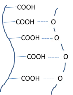 | Liaison hydrogène[5] | Un polymère accepteur de liaison hydrogène : l'oxyde de polyéthylène (PEO) | Un polymère donneur de liaison hydrogène : l'acide polyacrylique | |