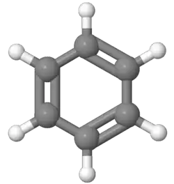 Le modèle des hydrocarbures aromatiques est le benzène C6H6, constitué d'un cycle à six atomes de carbone formant un hexagone régulier et comportant six électrons délocalisés. La représentation de ce système est un hexagone dans lequel trois liaisons doubles alternent avec trois liaisons simples. Les six liaisons sont de longueur identique, intermédiaire entre les longueurs de la simple et de la double liaison.