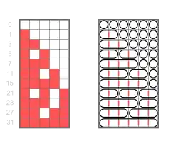 Pour noter la représentation graphique ci-dessus, on peut convenir d'écrire un « 1 » s'il n'y a pas de barre de séparation, et un « 0 » dans le cas contraire. Ainsi, la composition (2,2,1,4) de 9 est représenté par la suite de 8 chiffres binaires 10100111 (il y a autant de 0 dans « 10100111 » qu'il y a de virgules dans « (2,2,1,4) »).