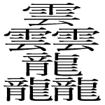 Une composition de 84 traits existe dans les kokuji japonais (figure de droite), il est composé de trois « nuages » (雲) surmontant trois « dragons » 龘, et signifie « ayant l'apparence d'un dragon en vol ».