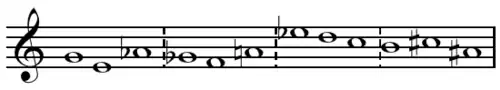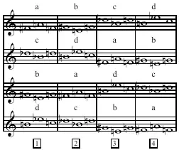 -do, avec une succession d'intervalles de +4 puis -3 demi-tons. Les mesures suivantes présentent trois transformations de ce tricorde d'ouverture, en formes rétrograde-inversion, rétrograde et inverse (ré