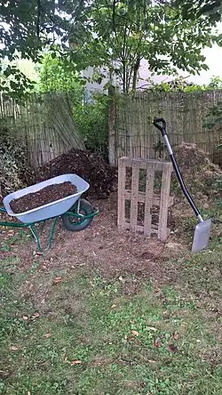 Lors du dépôt de matières organiques, il est important d’aérer et d’homogénéiser le compost, pour en favoriser la décomposition ou en empêcher le pourrissement (méthanisation) ; cette opération peut être réalisée au moyen d'une fourche ou de tiges aératrices destinées à cet usage, mais également de manière passive par l'ajout de matière sèche[11].