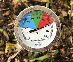 Lorsque les quantités de matière mises en œuvre sont importantes, le changement de température du tas permet de suivre l’évolution du compostage, et le suivi de la température du compost permet de distinguer plusieurs phases[10].
