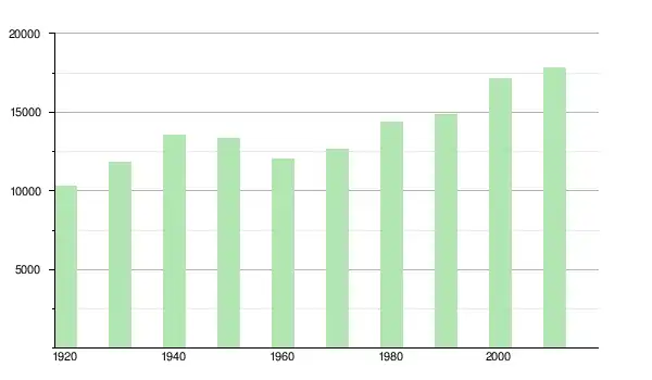 | 1950 | 13 352 | ▼ −1,54 % | |
