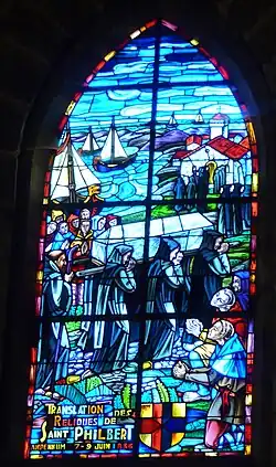 En 836, les moines du monastère de Saint-Philbert situé à Noirmoutier, apprirent que les Normands se dirigeaient de nouveau vers leur île afin d'y mener un raid. Le 7 juin, ils décidèrent de fuir, mais transportèrent le corps du fondateur (saint Philbert) avec eux, jusqu'à la ville de Déas[13], située sur le continent et qui prit par la suite le nom de Saint-Philbert-de-Grand-Lieu.