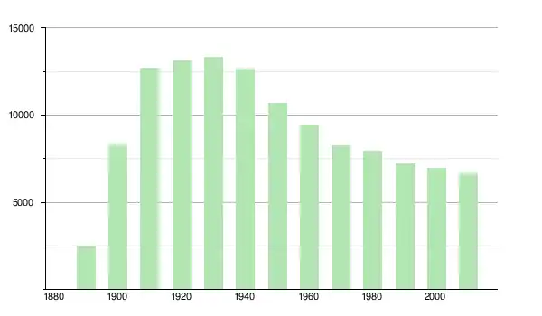 | 1950 | 10 675 | ▼ −15,47 % | |