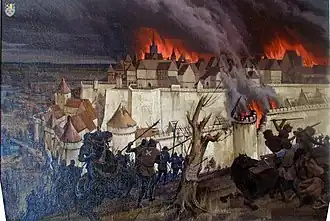 La campagne de 1479 est donc avantageuse aux Français. Charles d'Amboise accumule les succès, alors que les Comtois sont livrés à eux-mêmes. En avril 1479, Dole est assiégée une deuxième fois. Pour emporter la victoire, les troupes de Louis XI massacrent et détruisent la ville, lui ôtant tout ce qui fait d'elle la capitale de la province. L'écrasement de la capitale comtoise provoqua une vague de panique dans la comté: Salins, Poligny, Nozeroy, Luxeuil, Lure et Faucogney capitulent dans la foulée[8]. Seules Arbois, Gray et Vesoul vont vouloir résister et subiront le sort de Dole[9]. La conquête devient alors inexorable.