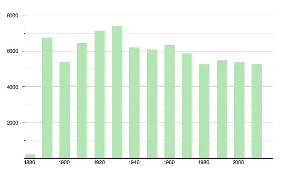 | 1950 | 6 076 | ▼ −1,92 % | |