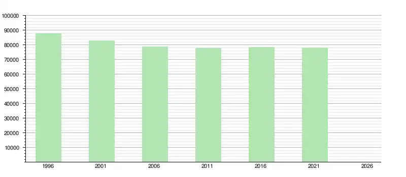 Il y avait au total 77 792 habitants en 2011 contre 78 948 en 2006, soit une baisse de 1,5 %[1]. À noter que la baisse de population est moins forte que dans les années précédentes.
