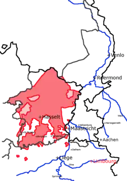 Il comprenait donc en un sens anachronique une petite partie de la Hesbaye actuelle en Belgique et une plus grande partie de la Campine, aujourd'hui partiellement en Belgique et partiellement aux Pays-Bas. Il était voisin au Nord de la commune de Bois-le-Duc et du comté de Gueldre (Pays-Bas), vers l’Ouest des quartiers de Louvain et d’Anvers ; vers l’Est, ses frontières étaient baignées par la Meuse, et vers le Sud, l'ancien Pays de Liège.
