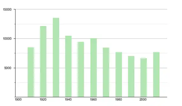 | 1950 | 9 418 | ▼ −10,15 % | |