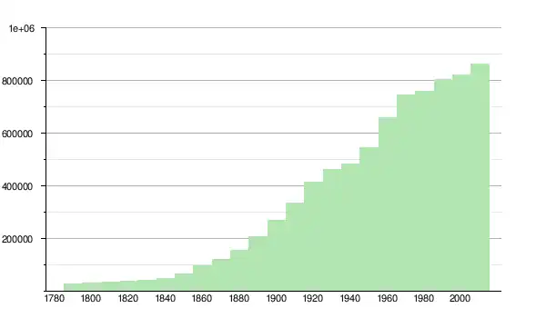 Parmi les 319 040 ménages, 31,20 % avaient les enfants de moins de 18 ans. 48,60 % des ménages étaient des couples mariés, 13,60 % étaient constitués d'une femme élevant seule ses enfants, et 34,00 % était les ménages sans enfants. 28,20 % des ménages étaient constitués de personnes vivant seules dont 11,00 % avaient 65 ans ou plus. Le ménage moyen comptait 2,50 personnes et la famille moyenne comptait 3,08 personnes.