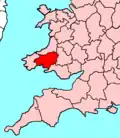 - celui de Carmarthen, avec les comtés du Cardiganshire, du Carmarthenshire et du Pembrokeshire, sous la « justice de Carmarthen » ;