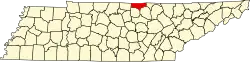 | Fentress | 049 | Jamestown | 1823 | Les comtés de Morgan, d'Overton et de White | James Fentress législateur d'État du Tennessee. | 16 625 | 1 292 km2 | |