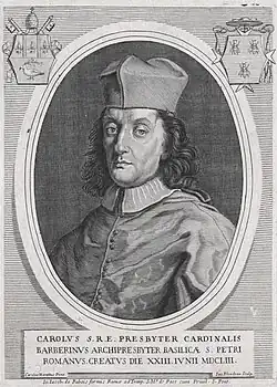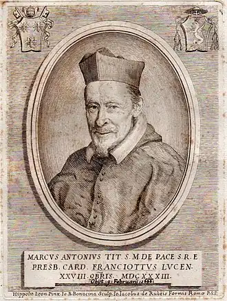 - ↑ Antonio Barberini est créé cardinal in pectore le ; sa nomination est publiée le .