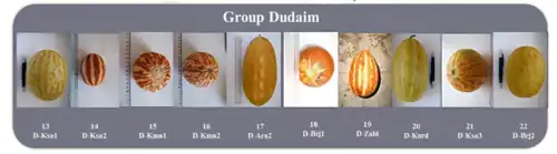 Forouzandeh Soltani et al. (2010) ont établi une phylogénie des melons iraniens qu'ils divisent en 7 groupes. Dudaim (groupe VII) était indiscutablement éloigné de Flexuosus eux-mêmes génétiquement très divers. 2 échantillons sur 3 proviennent du Kusdistan[19]. Le niveau de polymorphisme du groupe dudaim est le plus élevé parmi les melons iraniens, Mahmoud Raghami et al. (2014) les séparent deux sous-groupes avec des phénotypes différents (ils montrent des dudaim longs et ovales)[20].