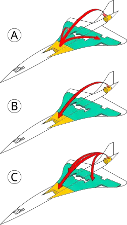 Le rééquilibrage des masses (gestion du centrage) permet une optimisation des performances. Pendant toutes les phases de vol, le carburant est déplacé entre les divers réservoirs afin de positionner au mieux le centre de gravité par rapport au centre de poussée dans la phase de vol concernée (centrage avant en subsonique, centrage arrière pour le vol supersonique)[13].