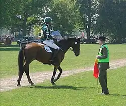 Le contrôle vétérinaire a lieu après le cross. Il a pour but de déceler des lésions chez le cheval après cette phase éprouvante pour l'organisme de l'équidé[16]. Il se compose d'une vérification globale de l'état du cheval avec palpation de ses membres, de ses articulations ainsi que de son rachis. Enfin, afin de déceler d'éventuelles boiteries, le cavalier doit faire effectuer un aller-retour au trot d'une trentaine de mètres sur une surface plane et solide[28]. En effet, le trot est une allure symétrique (à contrario du galop), et la surface solide, en augmentant la douleur, révélera plus facilement une dissymétrie de l'allure[29]. Le vétérinaire se prononce sur l'aptitude du cheval à poursuivre les épreuves. S'il décide l'élimination, sa décision est sans appel[28].