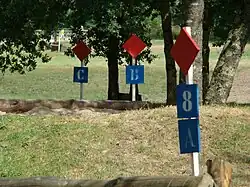 La hauteur maximale d'un obstacle est de 1,20 m[20] mais la façon dont il est placé dans le parcours peut augmenter considérablement la difficulté à le passer. On peut les séparer en deux grandes parties : les obstacles isolés et les combinaisons. Ceux-ci sont composés d'éléments aux profils divers.