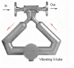 Le compteur Coriolis montré dans la Fig.(8) est très précis dans des conditions monophasées mais imprécis pour mesurer des écoulements diphasiques. Il pose un problème complexe d'interaction structure-fluide en cas de fonctionnement diphasique. Il existe peu de modèles théoriques disponibles pour prédire les erreurs rapportées par le compteur Coriolis dans les conditions susmentionnées.