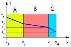 Dans le cas d'un régime permanent et unidimensionnel, l'équation précédente se réduit à : dont la solution est T =Ax + b où A et B sont des constantes à fixer selon les conditions aux limites.