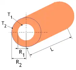 Le tube simple est constitué d'un seul matériau homogène. La température est homogène sur chaque surface du tube. On considère que le tube a une longueur infinie afin de s'affranchir des effets de bord.
