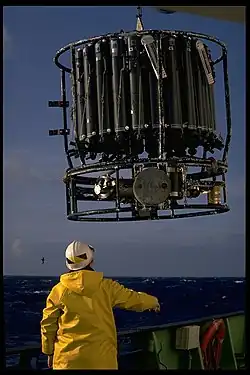 Composée généralement d'un cylindre d'une soixantaine de centimètres contenant des capteurs de pression et conductivité, la CTD comporte une sonde thermique à l'une de ses extrémités et est reliée au bateau par un câble à son autre extrémité.