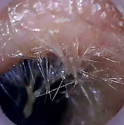 - les follicules pileux : nombreux dans le tiers externe du conduit, très peu marqués vers l'intérieur ;